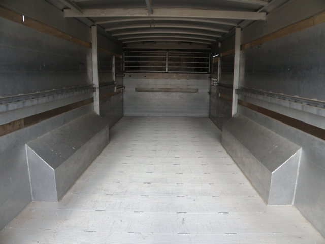 20 ft gooseneck. Full width of 8′ 3″ inside. Very clean trailer, like new. Used only to haul weaner pigs. Powerwashed and disinfected between each load. Has deck rails. No decking. No center gate but it can be added. Four roof vents, fully adjustable.